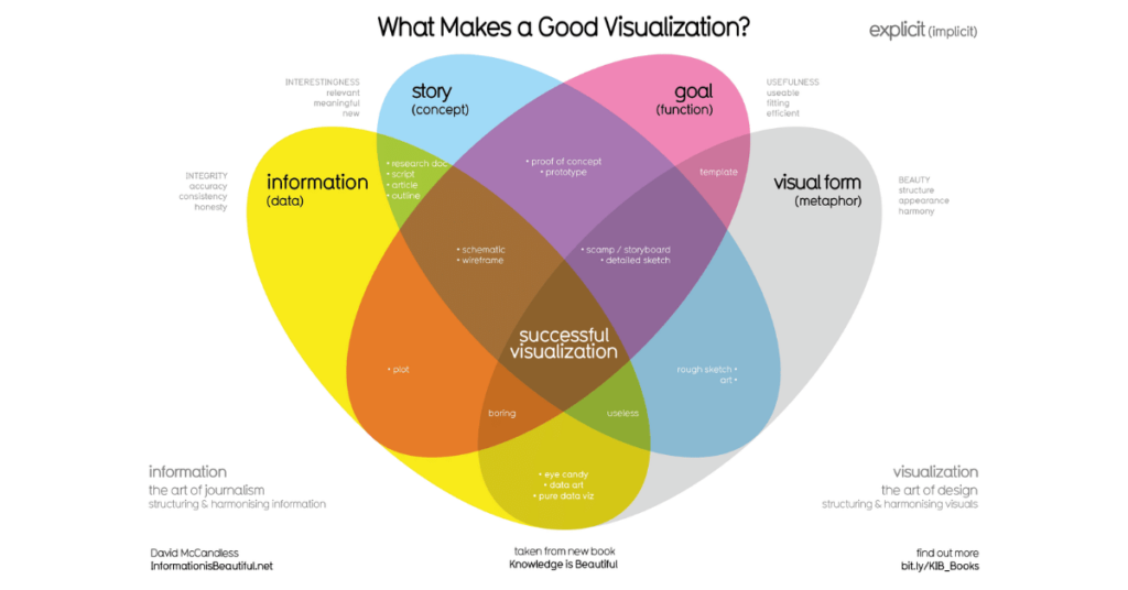According to data journalist and information designer, David McCandles, there are 4 main elements to excellent data visualisations: